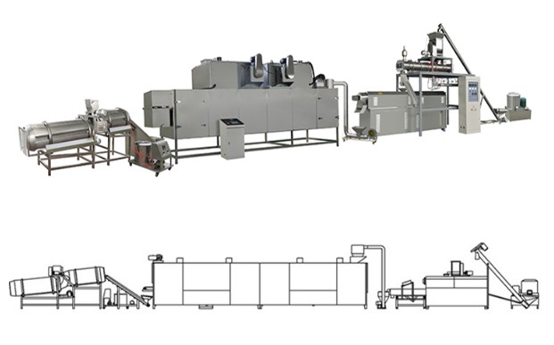 Pet Food extruder machine/pet food making machine/pet food production line is specially designed to produce pet daily and healthy food, also animal feed for every kind of animals. Normally using grains powder as main material, mixing with meat, bones powder, fish powder as a flavoring Through Adopting pre-conditioning system for raw material, it can increase capacity and reduce power consumption. This line would satisfy different demands for capacity and quality. At the same time, we focus on palatability and scientific nutritional proportion, which make pet food more easily digested and absorbed. On base of this line, we would like to reach a multi-level and comprehensive cooperation with every client in this trade.